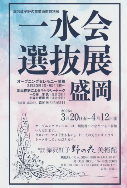 一水会選抜展 盛岡会期 2026年3月20日(金)~4月12日(日) 10:00~17:00(最終日15時閉場)会場 深沢紅子 野の花美...