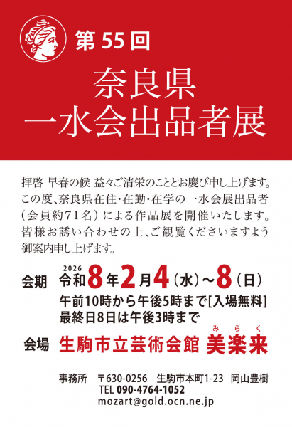 第55回 奈良県一水会出品者展会期:2026年2月4日(水)~8日(日) 10:00~17:00(最終日15:00まで)会場:生駒...