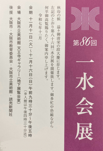 第86回 一水会展 大阪展 2025-10-07 23:14:14 第86回 一水会展 大阪展 ■会期:2025年11月11日(火)~11月16日(日) 9:30~17:00※入館は16:30まで ギャラリートーク 11月11日(火)14:00~ ■会場:大阪市立美術館 天王寺ギャラリー(地下展覧会室)