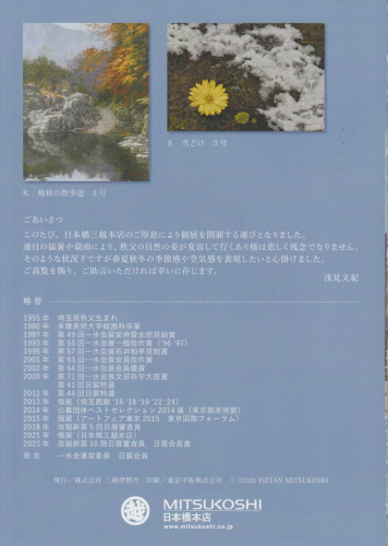 浅見文紀 油絵展 2026-02-19 13:41:10 浅見文紀 油絵展 会期 2026年2月25日(水)~3月2日(月) 10:00~19:00(最終日17時閉場) 会場 日本橋三越本店 本館6階 美術特選画廊 ※個展のデジタルカタログがご覧いただけます。
