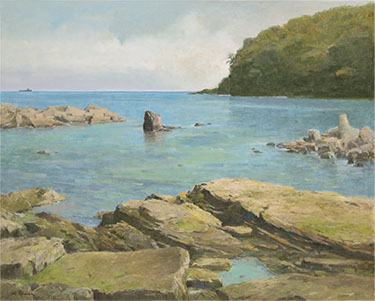 元来水をテーマに選び、自然描写を続けてきました。以前は建造物との対比、現在は自然物、岩であり、山林であります。一水会の方針でもある自然描写の精神性を感じられる様な作品をつくっていきたいと思います。